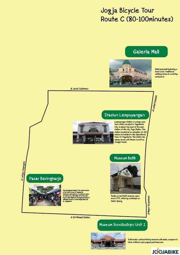 In 2025, Jogja Bikes has implemented a further 50% increase in bikes available along Malioboro St and has increased access to pick up points by 20%. Jogja Bikes has now implemented a self-guided bike tour, with signage around the city to help guide both the tour. Due to the popular communal acceptance of both #VoicesWithoutCigarettes and #TransportationWithoutFuel schemes, Malioboro has now become a completely smoke free zone.