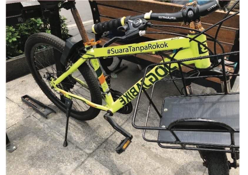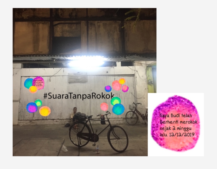 In 2021, partnership with existing Malioboro St share bikes ‘Jogja Bikes’ is implemented with a small but powerful rebranding of the bikes with an inclusion of a new ‘Smoke Free Jogja Bikes’ logo, and both #TransportationWithoutFuel and #VoicesWithoutCigarettes printed on either side of the bike to reinforce the health-conscious message. The launch of ‘Watch Jogja Bike’ Sunday event will coincide with Car Free Sunday as an all-inclusive fitness event where participants will scan their personalised barcode through the existing ‘inabike’ app to enter, and then cycle there chosen 2K, 5K, 10K so on… track set up via digital GPS. Each Race is time scored so individuals compete with themselves to improve their fitness at their own pace, making it easier for individuals to become involved in more social aspects. A street mural has been started under there #VoicesWithoutCigarettes campaign, beginning on the corner of a laneway where a lot of Jogja’s street art thrives. Individuals will be given a blank coloured sticker with space to write something encouraging or personal about their journey towards quitting smoking, making their own mark on the landscape. Local artists will be employed on one Wage Tuesday to reinvent the vibrancy of Malioboro St, turning ash tray bins into plant boxes with no smoking signs, while also adding their own artwork to the outside. The unused Jogja Bikes information panels will be turned into motivational messages for healthy living without smoking, for example, “After 2-12 weeks of no smoking, your blood circulation and lung function begin to improve. More stamina to ride your bike!”